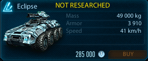 | Level | 6 | | Armor | 4,880 | | Weight | 46,000 | | Cost of studies | 1,000,000 | | The cost of purchasing | 1,500,000 | | Cost of sales | 375,000 |
