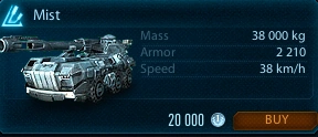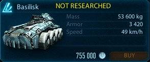 | Level | 5 | | Armor | 3,990 | | Weight | 52,000 | | Cost of studies | 800,000 | | The cost of purchasing | 1,200,000 | | Cost of sales | 300,000 |